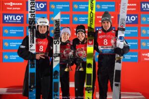 Die slowenische Mannschaft sicherte sich den Sieg beim zweiten Mixed-Teamspringen der diesjährigen Weltcup-Saison. Das Quartett mit Nika Vodan, Timi Zajc, Nika Prevc und Domen Prevc erzielte am Freitagabend in Willingen insgesamt 295,4 Punkte und setzte sich gegen Deutschland, die mit Anges Reisch, Karl Geiger, Selina Freitag und Philipp Raimund 294,8 Punkte errangen. Japan die mit Sara Takanashi, Ren Nikaido, Nozomi Maruyama und Ryoyu Kobayashi an den Start gingen, belegten mit 277,8 Punkten Platz drei.