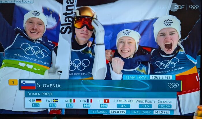 Das slowenische Team sicherte in Predazzo im Team-Mixed Wettbewerb Gold von der Normalschanze. Silber ging an Norwegen, Japan holt Bronze.
